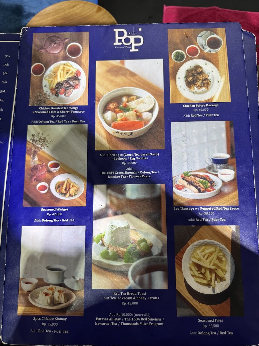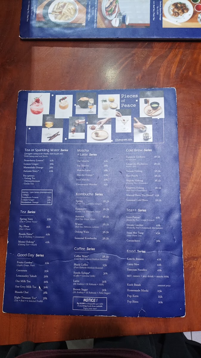 The ambiance inside Pieces of Peace is a blend of artistic charm and tranquility, making it the perfect retreat after a busy day of exploring the city. Though the cafe can become lively during peak hours, the owners have created an environment that still allows for relaxation. Customer 'J S' highlighted the café’s peaceful atmosphere, complemented by efficient air conditioning, which serves as a welcome relief from Jakarta's heat. With thoughtful decor that embodies the spirit of creativity, this café transports you to a place where serenity meets artistic expression.